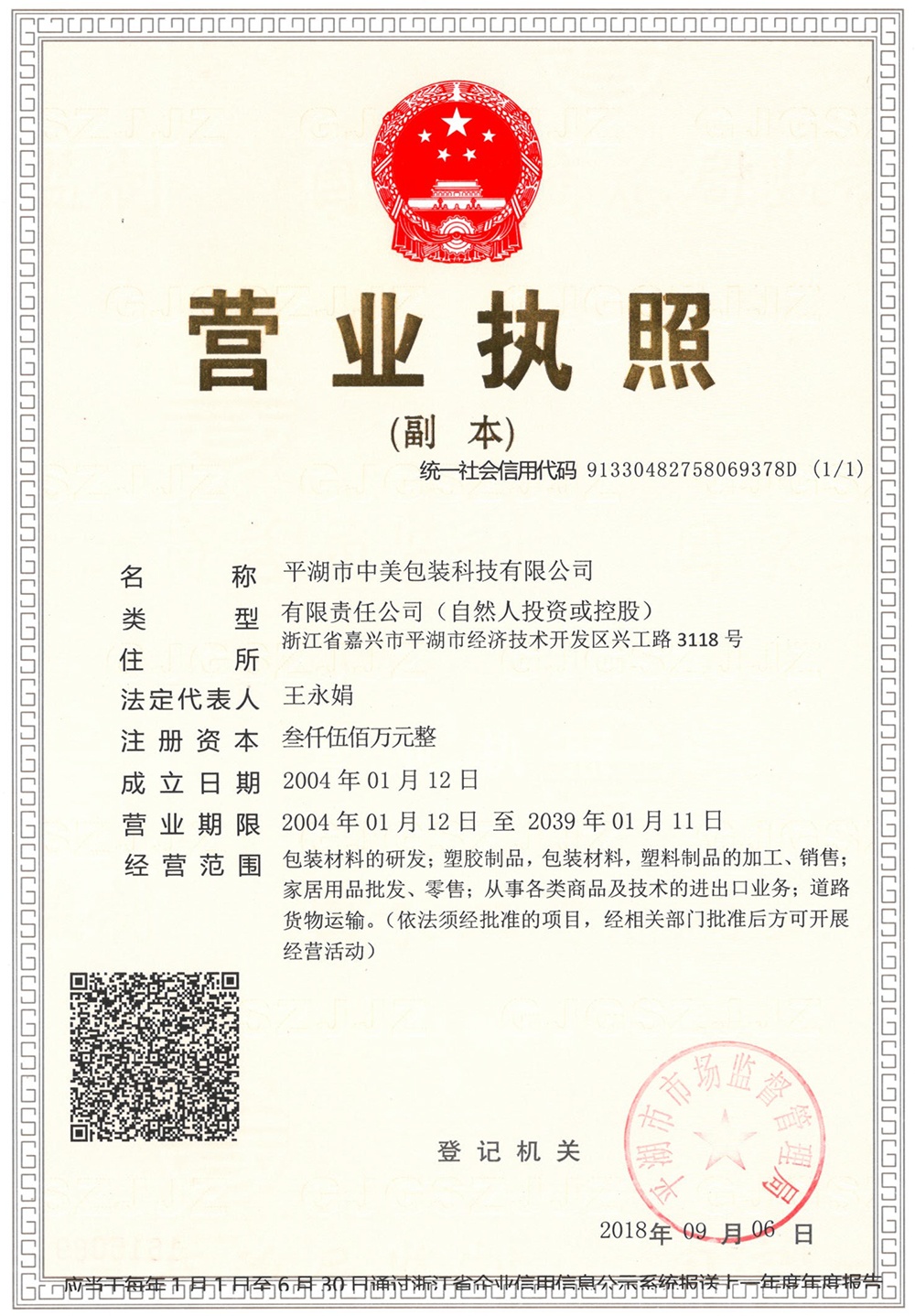 公司位于浙江省平湖市經(jīng)濟(jì)開發(fā)區(qū)興工路3118號,占地面積21311.6平方米,建筑面積11630.63平方米。公司設(shè)有5個(gè)職能部門,分別是生產(chǎn)設(shè)備部、技術(shù)質(zhì)量部、銷售部、財(cái)務(wù)部、綜合辦公室。下設(shè)1個(gè)生產(chǎn)車間及原料、成品倉庫等,現(xiàn)有員工70余人。